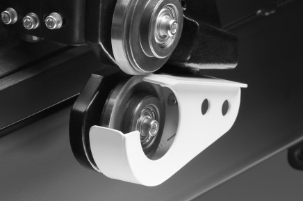 Wyposażony w osłonę dolnego krążka, dzięki czemu krążek się nie szczerbi, a blacha łagodnie układa na listwie opadowej. 8 wytrzymałych, metalowych łożysk oraz ergonomiczny,